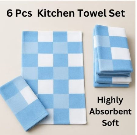 Base Material 100% Cotton Color blue and white Size 42 × 28 cm (Each Towel) Texture Soft & Durable Set Includes 6 Pieces